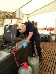 Das Aufgabengebiet bezog sich auf die Verpflegung aller Hilfsorganisationen und freiwilligen Helfern in den Regionen rund um Boizenburg. Eine frische Küche war das A und O und so halfen wir beim Gemüse schnippeln, Frühstücks- und Abendbrotplatten vorbereiten, Essenausgaben, Reinigungsarbeiten, Versorgungsfahrten, Abbauarbeiten und vieles mehr.
