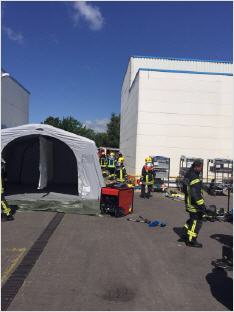 Unterstützung Gefahrguteinsatz bei Dekon-Aufbau, Atemschutzüberwachung, Dekontamination und Neutralisation des Gefahrgutstoffes