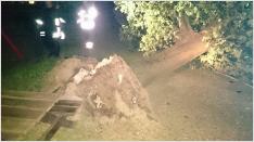 Umgestürzte Bäume versperren den Radrundweg am Tollensesee.