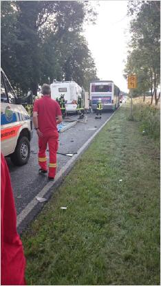 zugekommen. (BUS mit Wohnmobil) - 3 verl. Personen davon eine Person eingeklemmt.