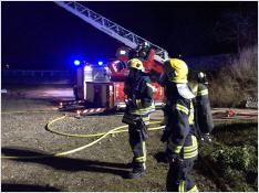 Dachstuhl: Holzkonstruktion mit gedecktem Blechplattendach stand in Vollbrand.