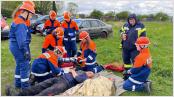 1. Gruppe: verschiedene Befreiungsmöglichkeiten einer Person, mittels Tragen der Feuerwehr aus PKW und LKW